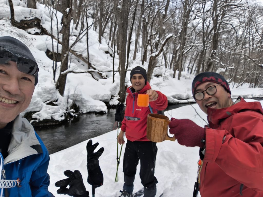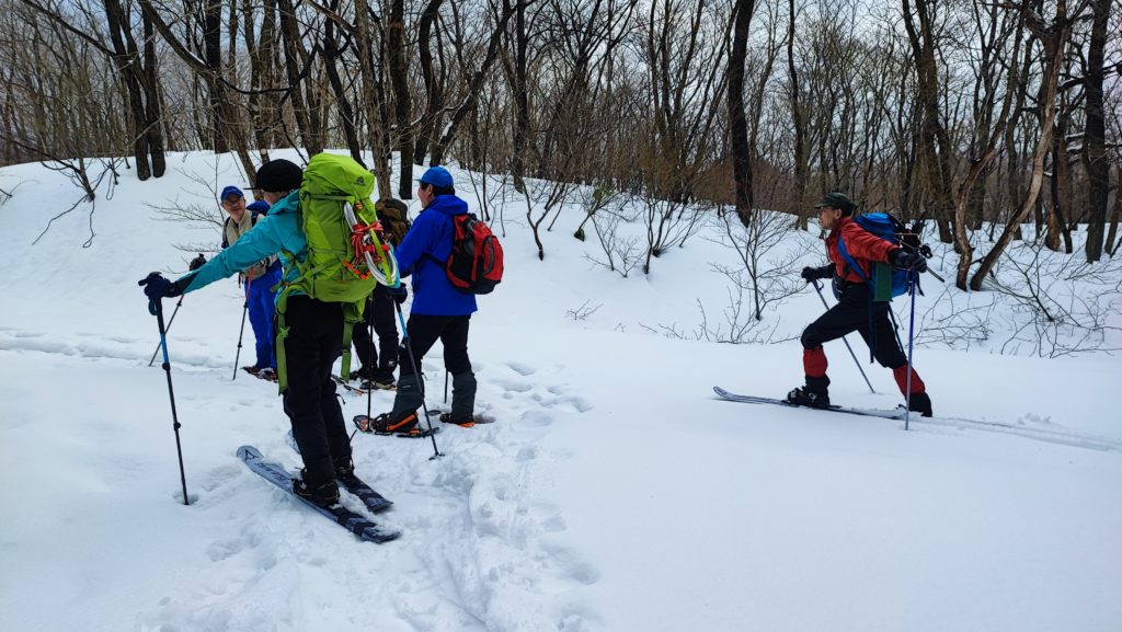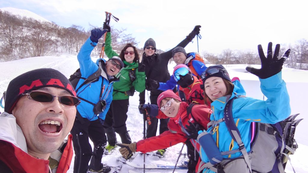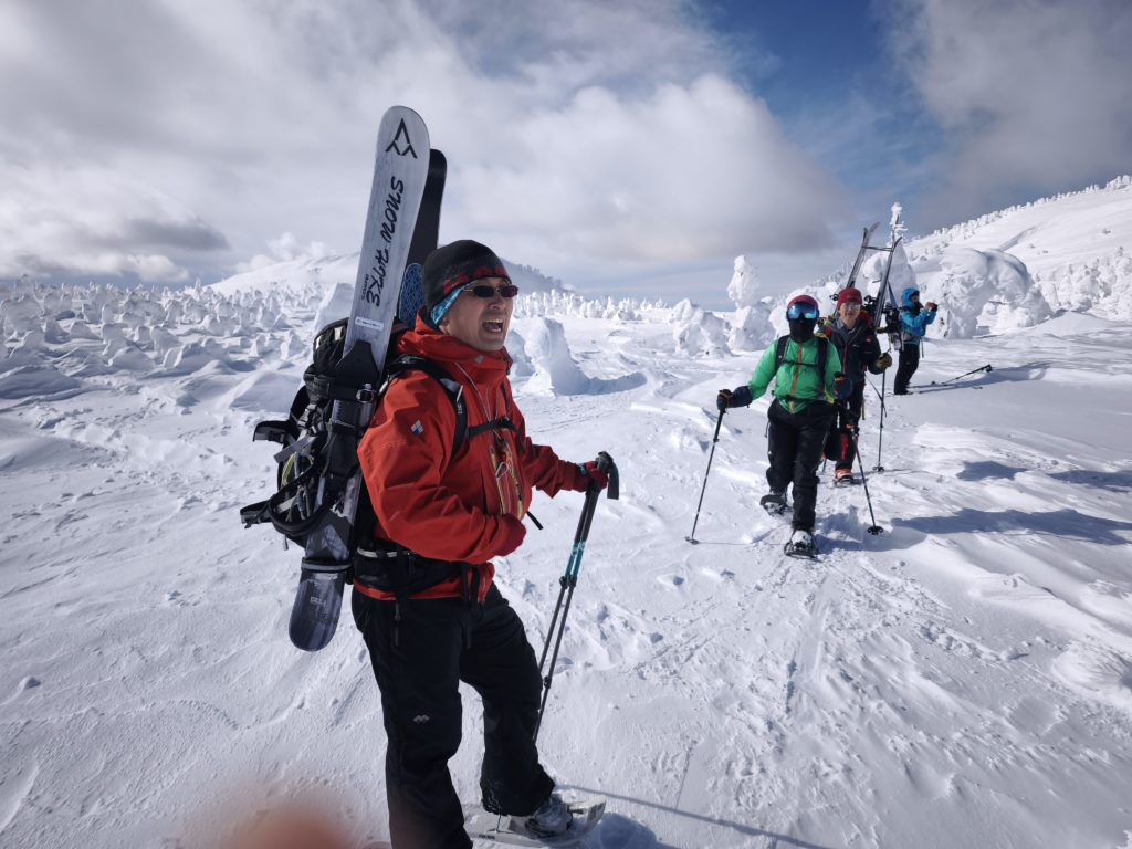 スノーハイクツアーのフィールドを見つけるため、インストラクターが集い商品の開発とイベントの可能性を考える研修会。